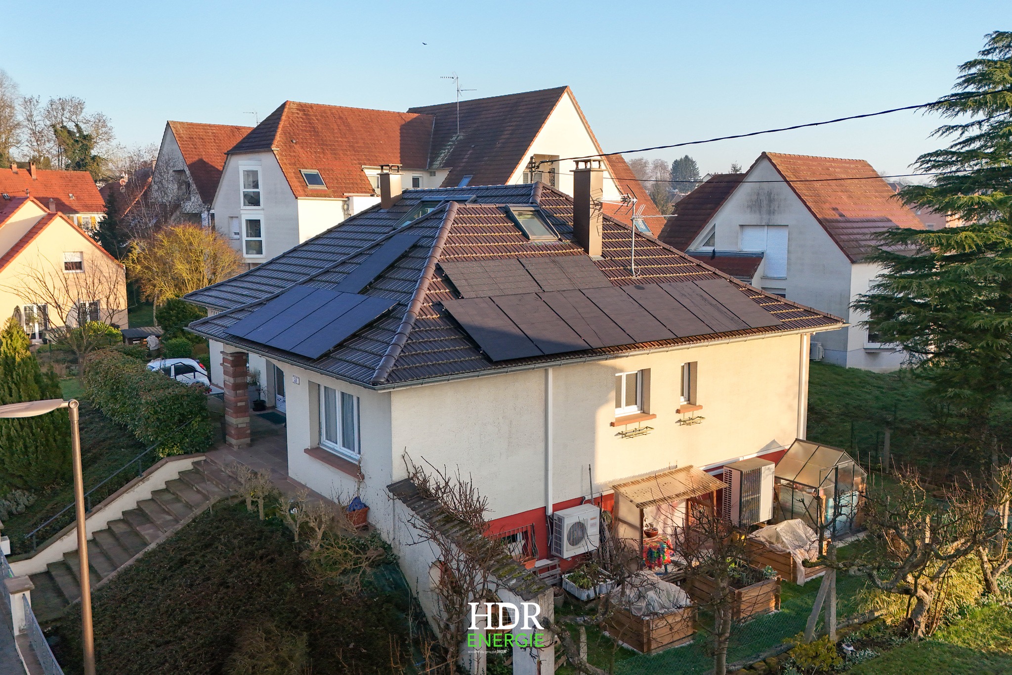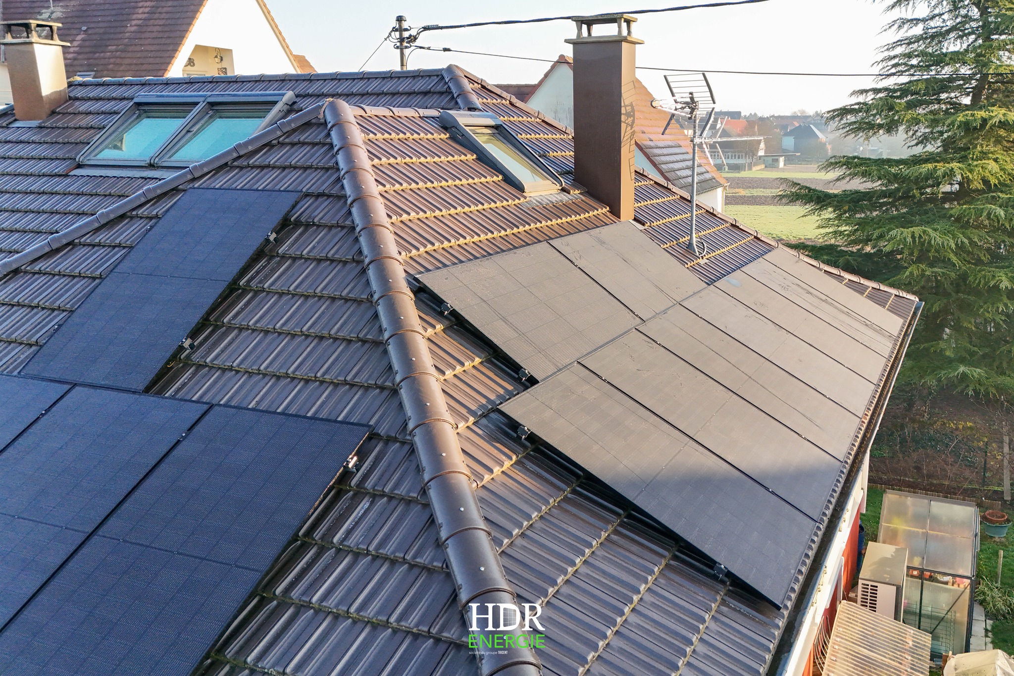 Installation photovoltaïque 7 kWc sur toiture de maison.